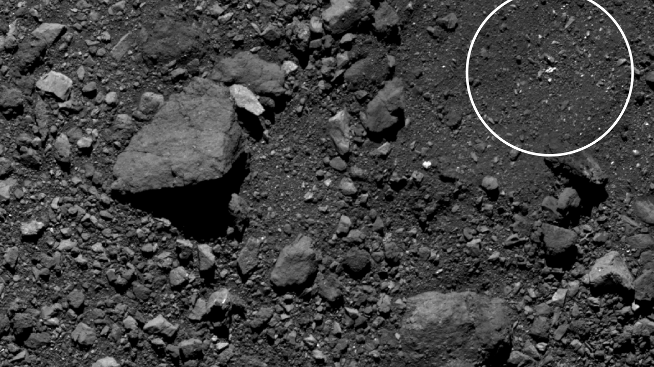 This image shows Sit Nightingale in detail. The image was taken by the PolyCam camera on NASA’s OSIRIS-REx spacecraft on April 12, from a distance of 1.7 miles (2.8 km). The field of view is 130 ft (39.6 m). For scale, the visible portion of the crater is 50 ft (15.3 m) wide. The image was obtained during Flyby 6B of the mission’s Detailed Survey: Baseball Diamond phase. When the image was taken, the spacecraft was over the northern hemisphere, pointing PolyCam farther north and to the west. This image is rotated and Bennu’s north is located at the bottom of the frame.